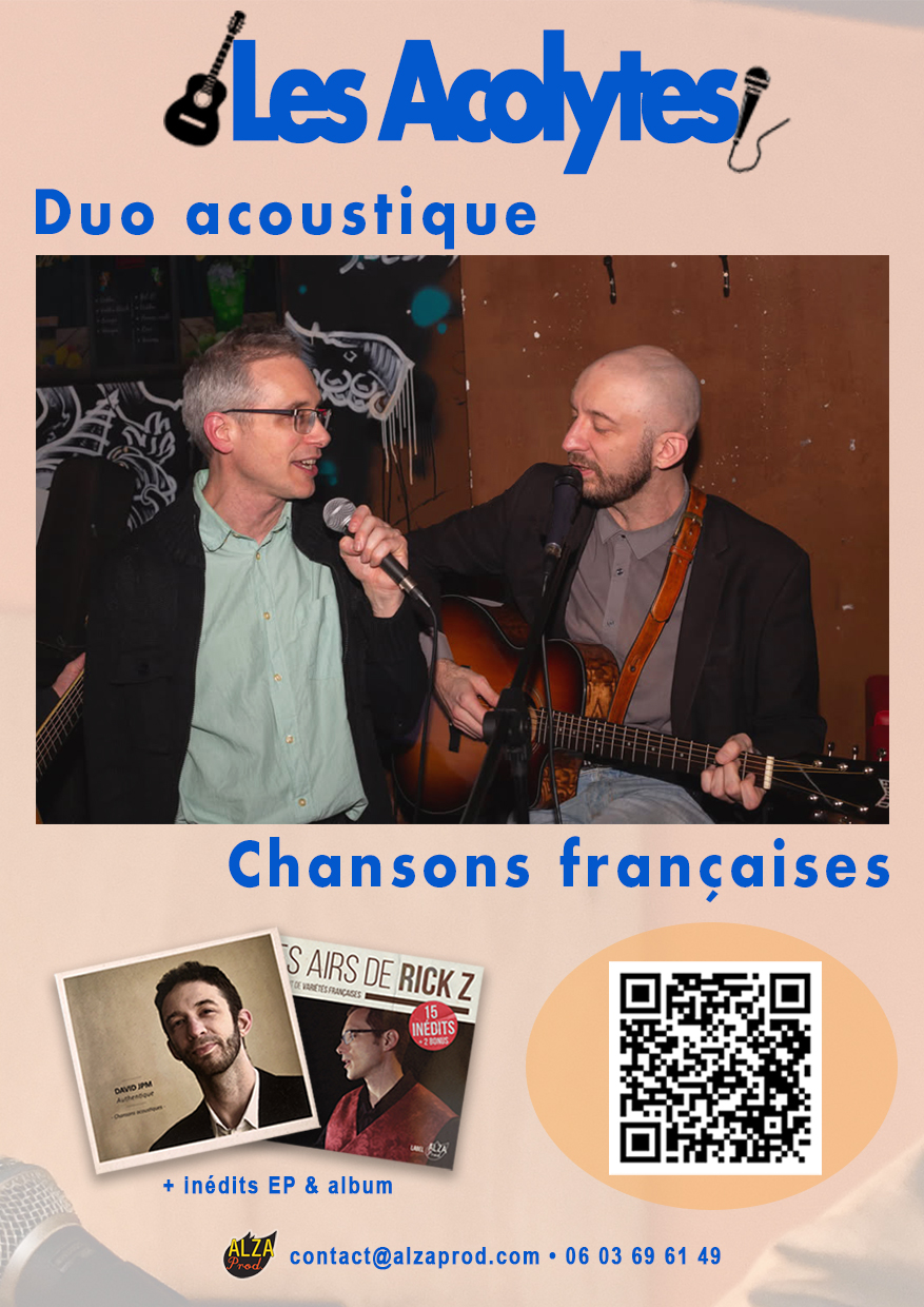 2 artistes professionnels, le guitariste et chanteur David JPM et le chanteur Rick Z, qui vont même, tour à tour, interpréter leurs propres compositions, dont chacun a écrit les paroles et la musique.